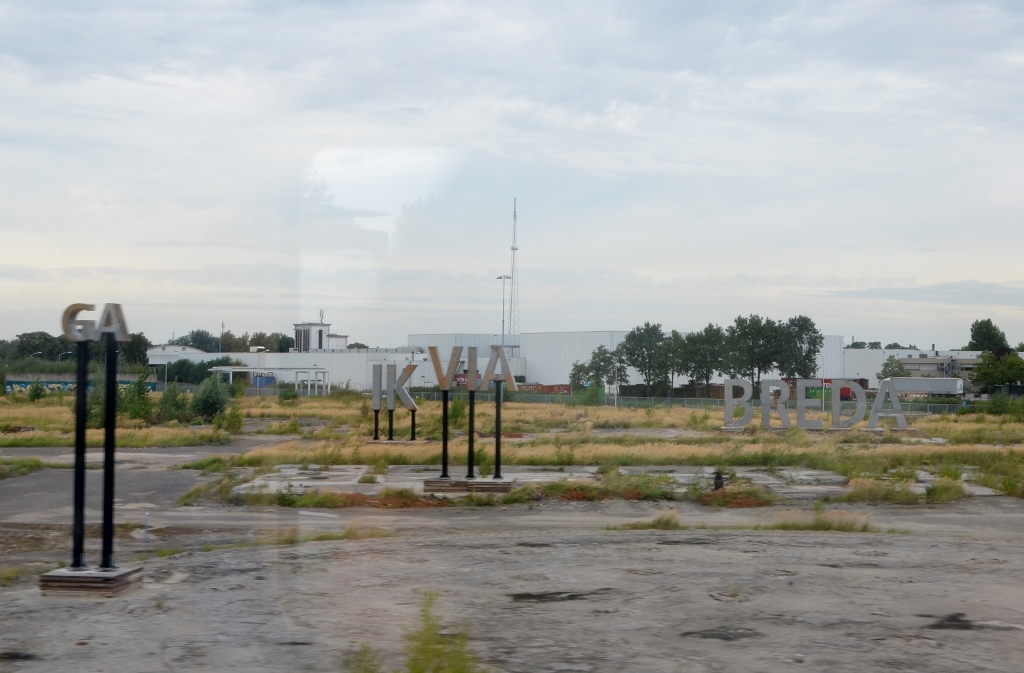“IK GA VIA BREDA”, is de tekst die treinreizigers lezen als ze langs het voormalige CSM-terrein rijden. Sinds begin september 2016 kan het de treinreiziger niet meer ontgaan, dat ze via Breda reizen. De 24-jarige ruimtelijk ontwerpster Nina Lenting bedacht deze vier woorden, twaalf letters. De tekst is alleen zichtbaar/leesbaar vanuit de trein. De woorden zijn op verschillende hoogtes en afstanden van het spoor geplaatst in het braakliggend terrein en lijken daardoor een onsamenhangend geheel in de open vlakte. Zodra je vanuit de trein haaks op de letters kijkt vormen de woorden pas een zin, maar dan moet je dus wel op het goede moment kijken. Waar de ontwerpster waarschijnlijk niet bij stil heeft gestaan is dat de woorden vanuit een andere invalshoek de zin “GA IK VIA BREDA” maken. In dat geval ontbreekt het vraagteken, maar goedbeschouwd heeft de treinreiziger op dat moment niks meer te kiezen. Je MOET via Breda!