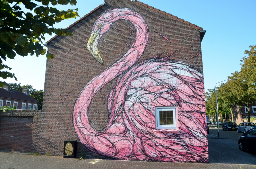 Vroeger was dit gebied een polder waar veel vogels broedden. De drie vogels (zwaan, toekan en flamingo) verbeelden het creatieve, kleurrijke en diverse karakter van de wijk, met een kleine knipoog naar het verleden.