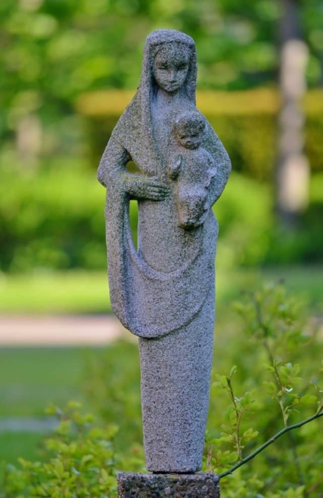 Het smalle beeldje van een moeder met kind staat in de binnentuin van het verzorgingstehuis. Verdere gegevens zijn niet bekend.