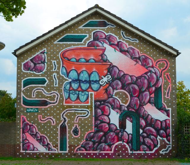 De anonieme HNRX heeft zich laten inspireren door de tuinders van Princenhage. Het is een vreemde mix van objecten gebaseerd op voedsel en alledaagse dingen. De kunstenaar noemt zijn eigen stijl COMICSURREAL.