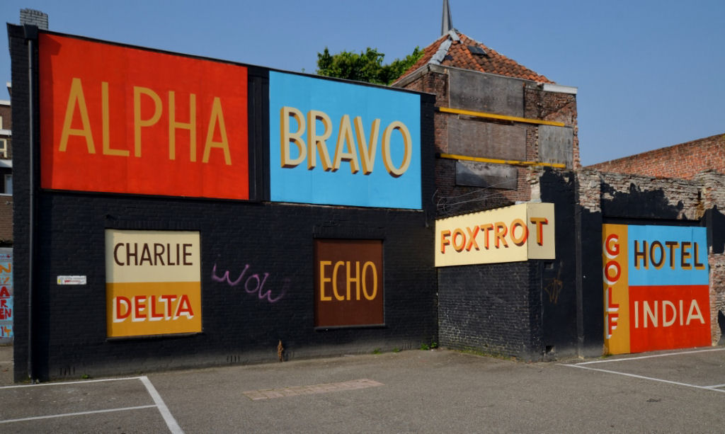In deze schijnbare eenvoudige muurschildering zitten diepere achtergronden. In de schildering nam Jeff Canham de eerste negen woorden van het NATO alfabet op. Het spellingsalfabet van de NAVO dient (evenals andere spelalfabetten) om met behulp van spraak met zo min mogelijk fouten een boodschap te kunnen spellen, ook bijvoorbeeld bij een zeer slecht verstaanbare telefoonverbinding. De schildering verwijst naar het militaire verleden van Achter de Lange Stallen, dat van 1765 tot 1980 onderdeel was het de Chassékazerne. De kazerne was tot 1993 in gebruik door de Landmacht.