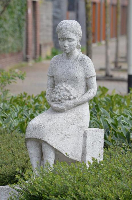Omschrijving: beeld van een meisje met bloemenboeket