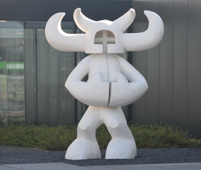 Dit kunststof beeld staat voor het bedrijfspand van CM.COM. Het is een frivole blikvanger voor de entree van het gebouw in de verder weinig inspirerende Konijnenberg. Het is vriendelijk door zijn ronde vormen en tegelijk is het een stoere Viking. Hij heeft iets tegenstrijdigs, een soort stripfiguur, fragiel en stoer tegelijk.