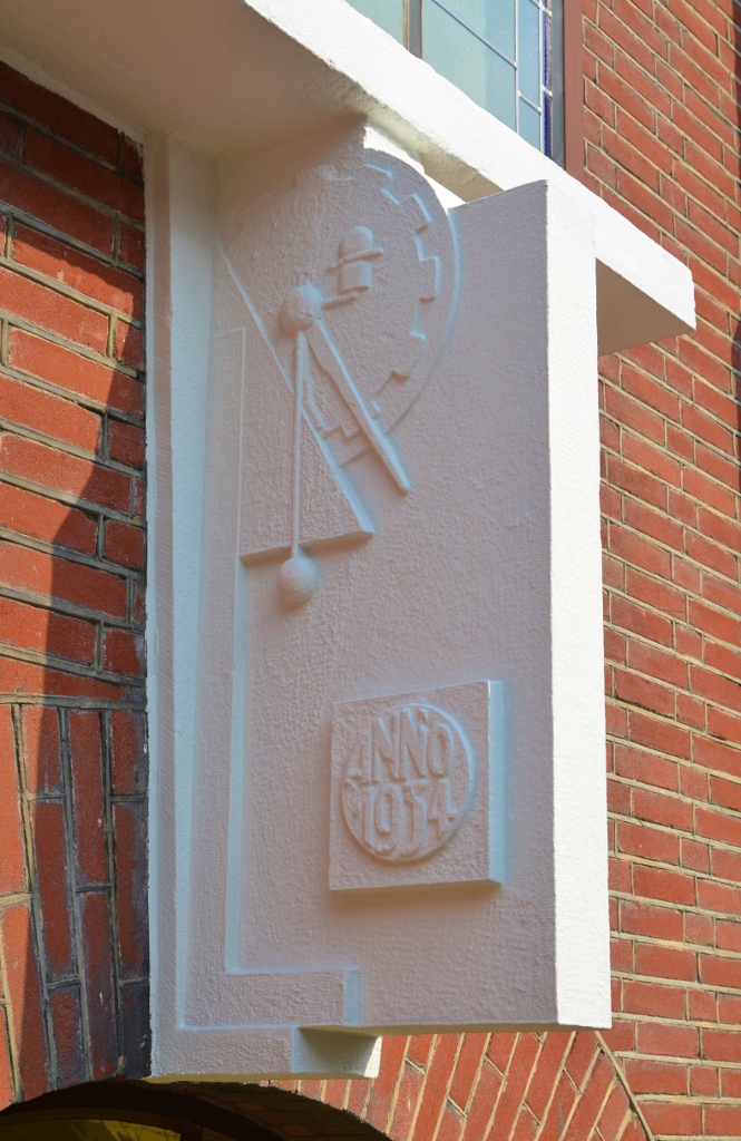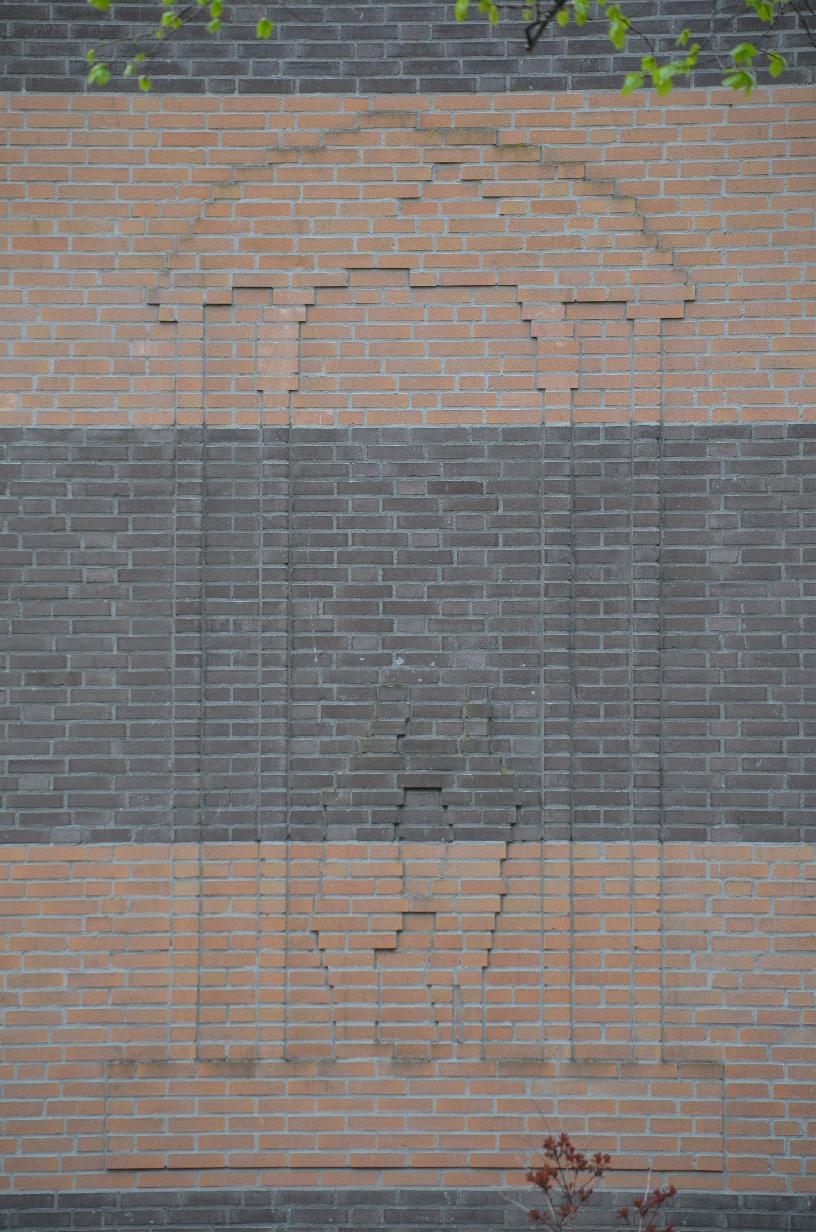 Het is vrij zeldzaam dat er in gevels met bakstenen afbeeldingen worden aangebracht.
