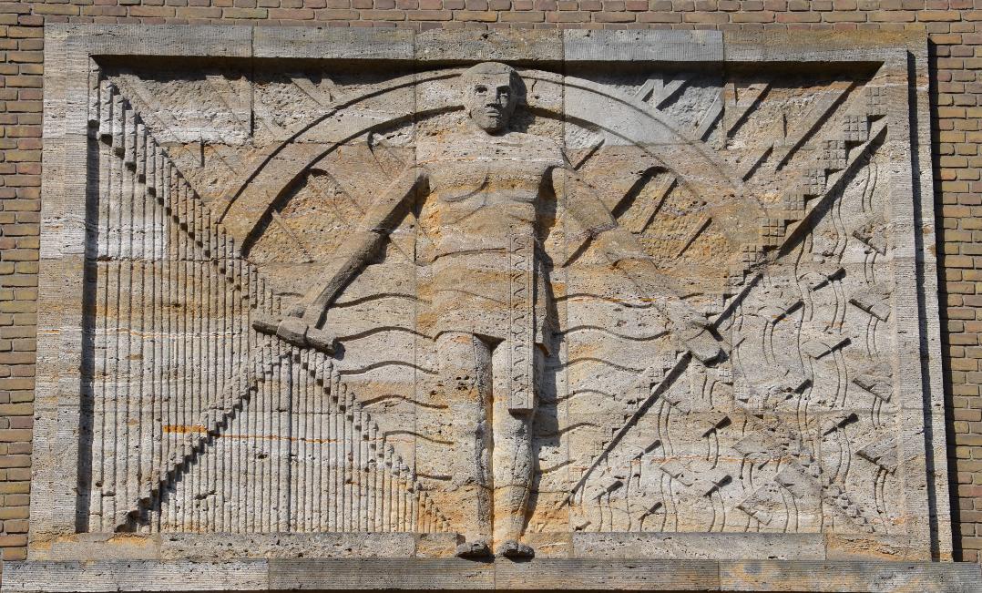 Dit beeld bevindt zich aan de buitenzijde van de watertoren welke in 1935 is opgeleverd. De tijd dat deze toren werd getekend en gebouwd, was soberheid troef. Ook was het crisistijd. De toren moest een industrieel bouwwerk worden, zonder al te veel poespas. De stadsbouwmeester Ir. P. Hornix was verantwoordelijk voor een karakteristieke vormgeving die aansloot bij de door hem ontworpen nieuwe woonwijk Belcrum. De stijl waarin de toren is ‘Amsterdamse School’. De schil is met handgevormde roodbruine baksteen opgetrokken. Deze constructie was voor deze tijd zeer modern. Het gebouw werd met ornamenten versierd.