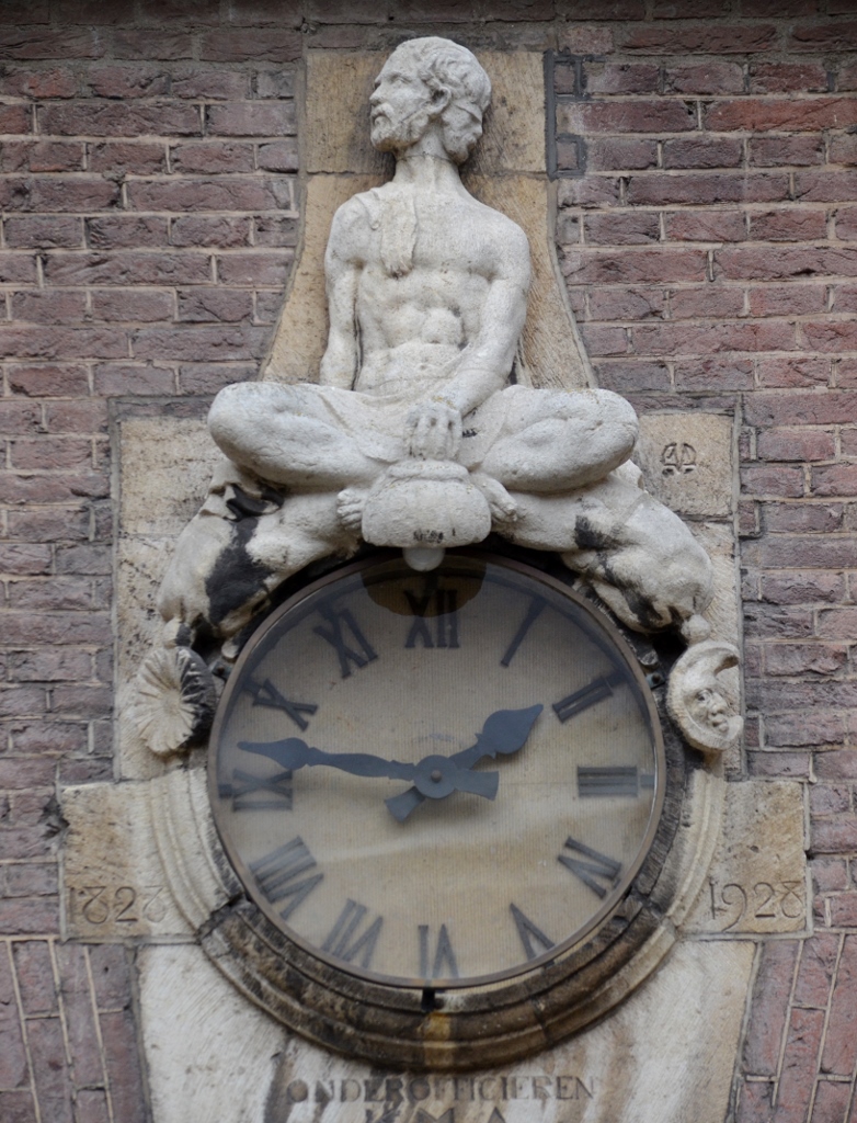 Onder het ornament staat een plaat met de tekst “1828-1978 HULDEBLIJK OUD-CADETTEN”, maar de plaat heeft niets met het ornament te maken.