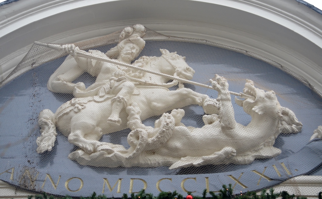 Na een verbouwing in 1772 kwam er een afbeelding van St. Joris met de draak en de spreukband Anno MDCCLXXII bovenaan de voorgevel. Het volledige verhaal van Joris en de Draak lees je hier.