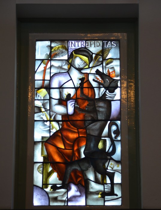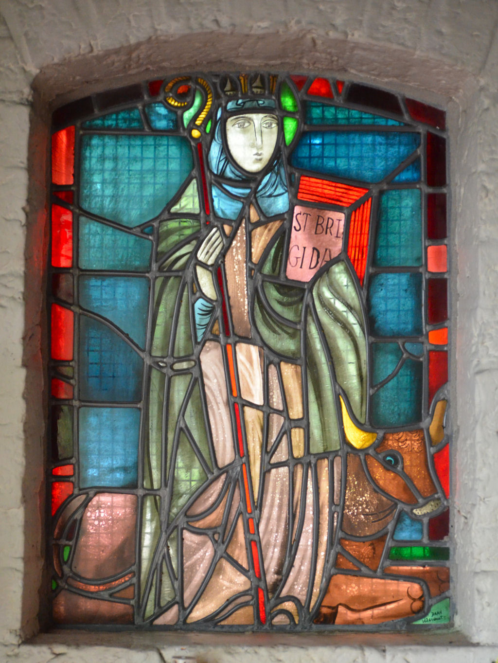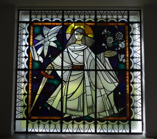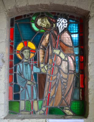Dit is de enige glas-in-lood raam met gebrandschilderd glas in kerk, alle andere vensters zijn uitgevoerd met eenvoudig wit glas-in-lood.