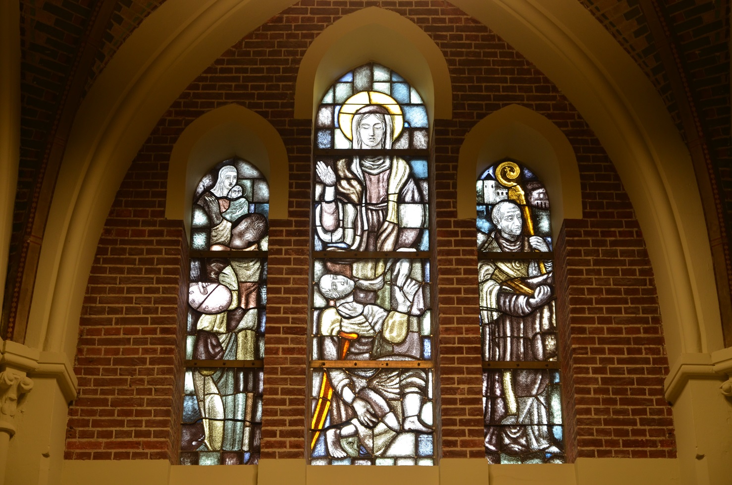 Materiaal: glas-in-lood met gebrandschilderd glas