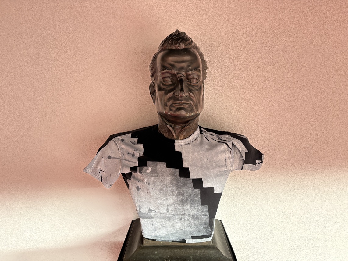 Op deze foto heeft men de buste voorzien van een T-shirt, maar dat is niet gebruikelijk.