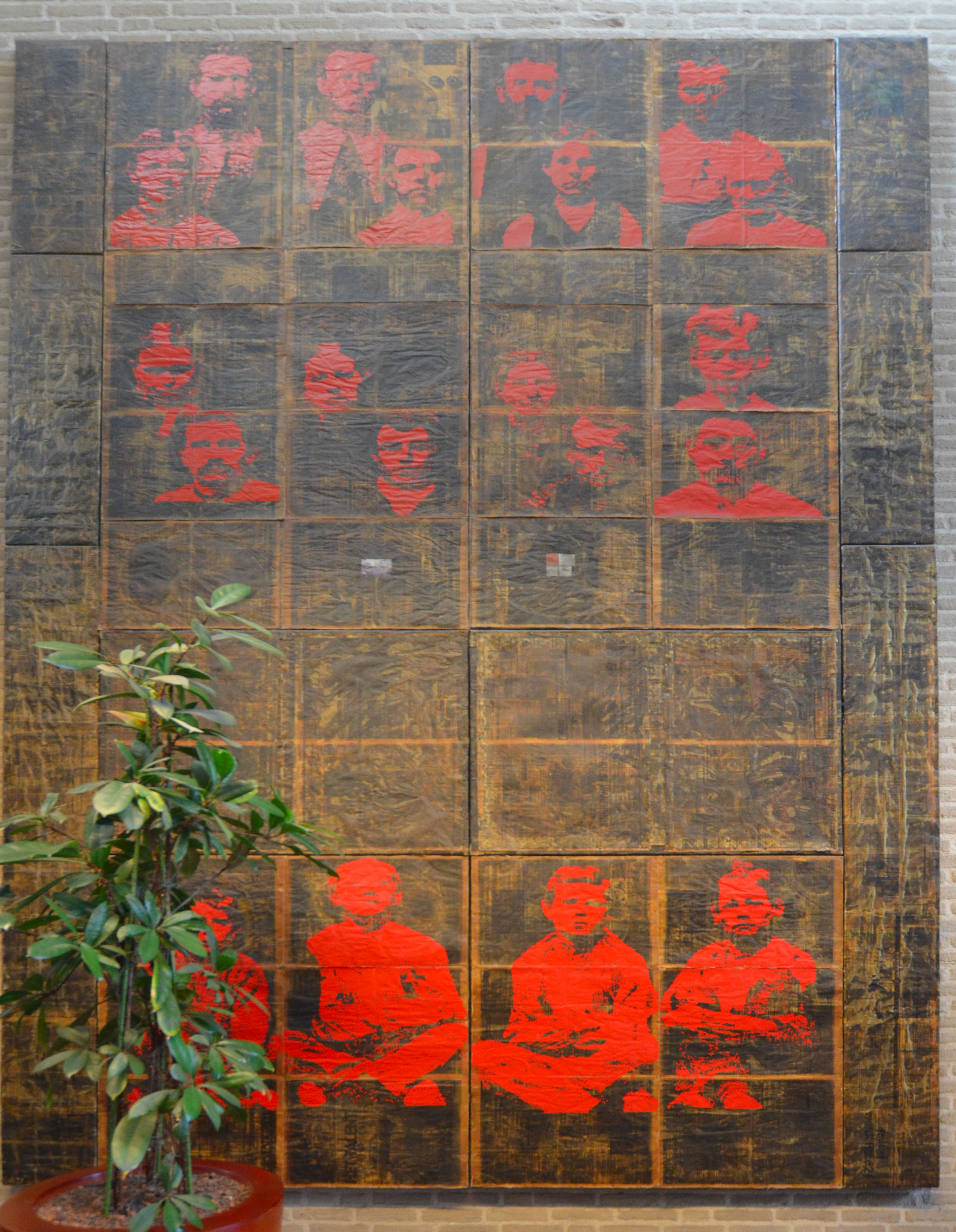 Deze panelen zijn aangebracht in de entree(zuid) van het stadhuis. De panelen zijn beplakt met kranten die vervolgens beschilderd zijn met afbeeldingen van kinderen en volwassen. De panelen bestaan uit meerdere stukken die tegen elkaar zijn gemonteerd.