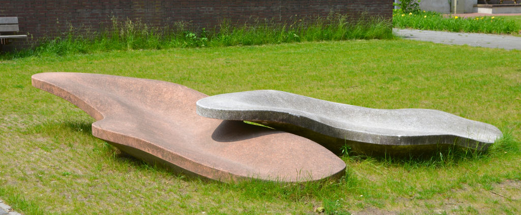 Deze sculpturen zijn geplaatst na de nieuwbouw van het plein. Wat heeft de ontwerper voor met de sculpturen? Een speelvoorwerp voor kinderen, een tuinmeubel of een gewoon een abstract kunstvoorwerp.