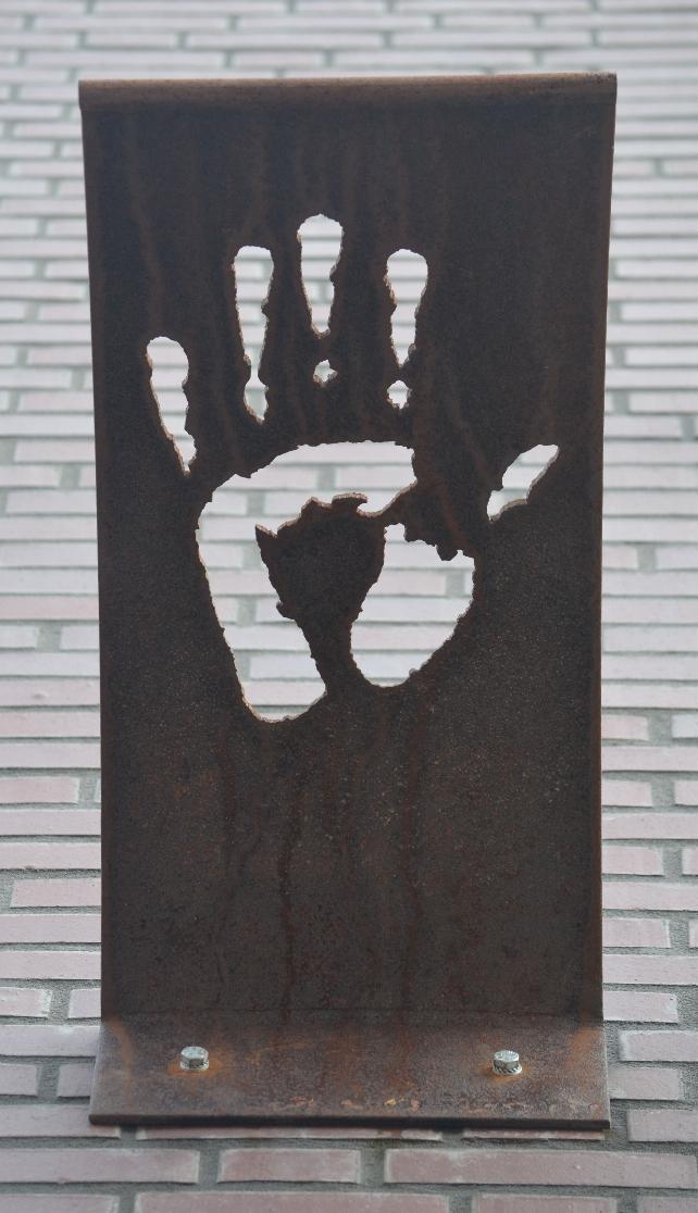 Materiaal: corten staal en verzinkt staal voor de steun
