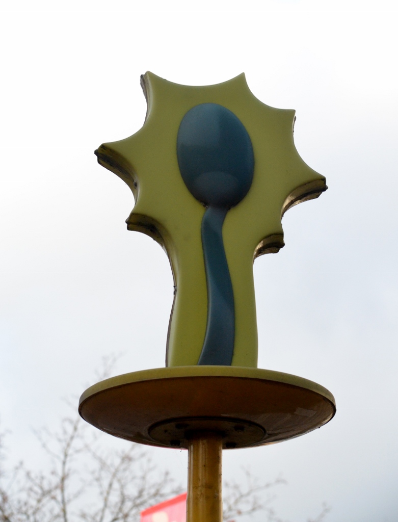 Dit is nog een van de weinige lantaarnpalen die over is. In de figuur is duidelijk een lepel te herkennen, een lepel voor het toedienen van medicijnen. De lantaarnpaal staat voor zorghotel Merlinde, voorheen was dit het oude ziekenhuis en het GGD-gebouw.