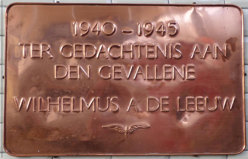 Omschrijving: gedenkplaat Wilhemus A. De Leeuw