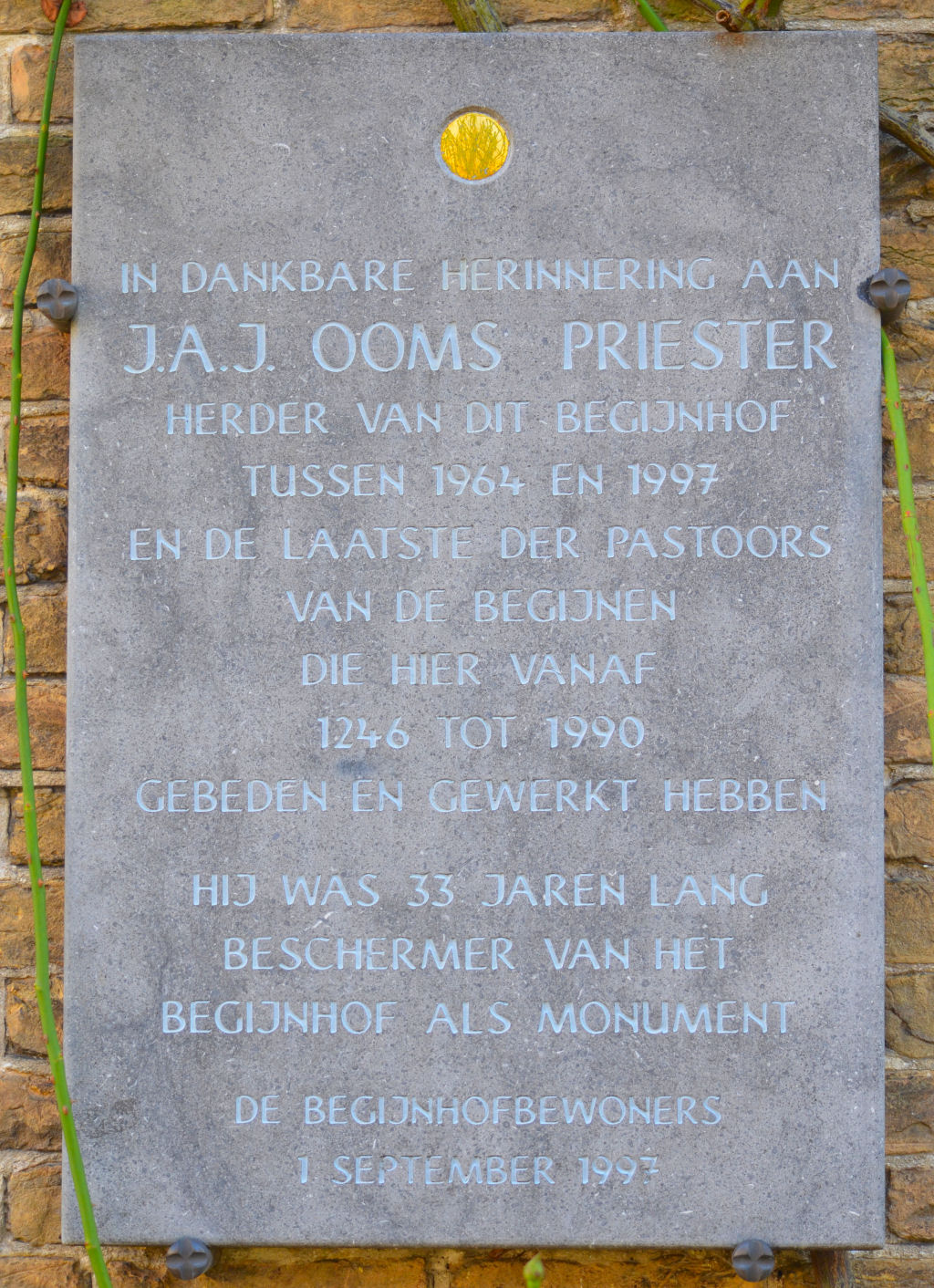 Omschrijving: gedenksteen J. Ooms begijnhof