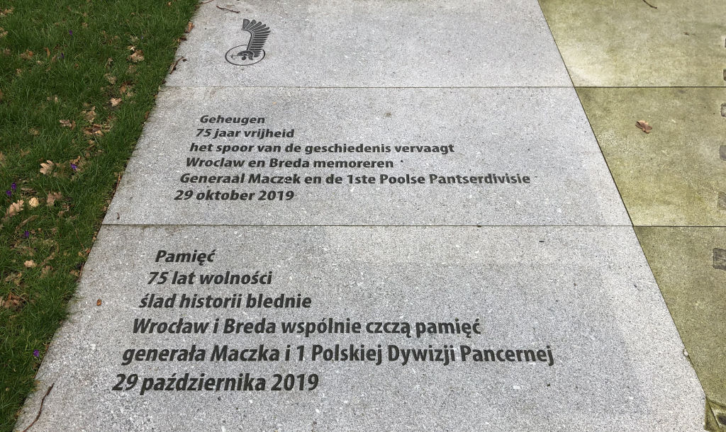 Een van de gedenkplaten in Breda ter ere van de bevrijding door de Polen.