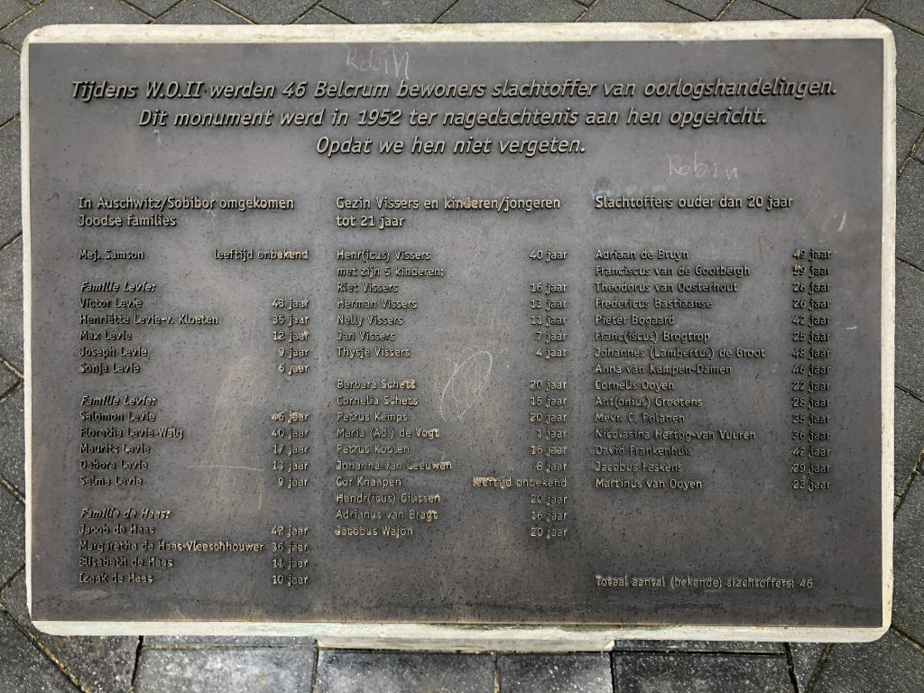 Op 3-11-2019 werd door het Belcrum Comité Dodenherdenking een plaquette onthult met de namen van de 46 wijkbewoners die het leven lieten tijdens WOII. De onthulling ging hand in hand met de jaarlijkse herdenking en de 75 jaar bevrijding.