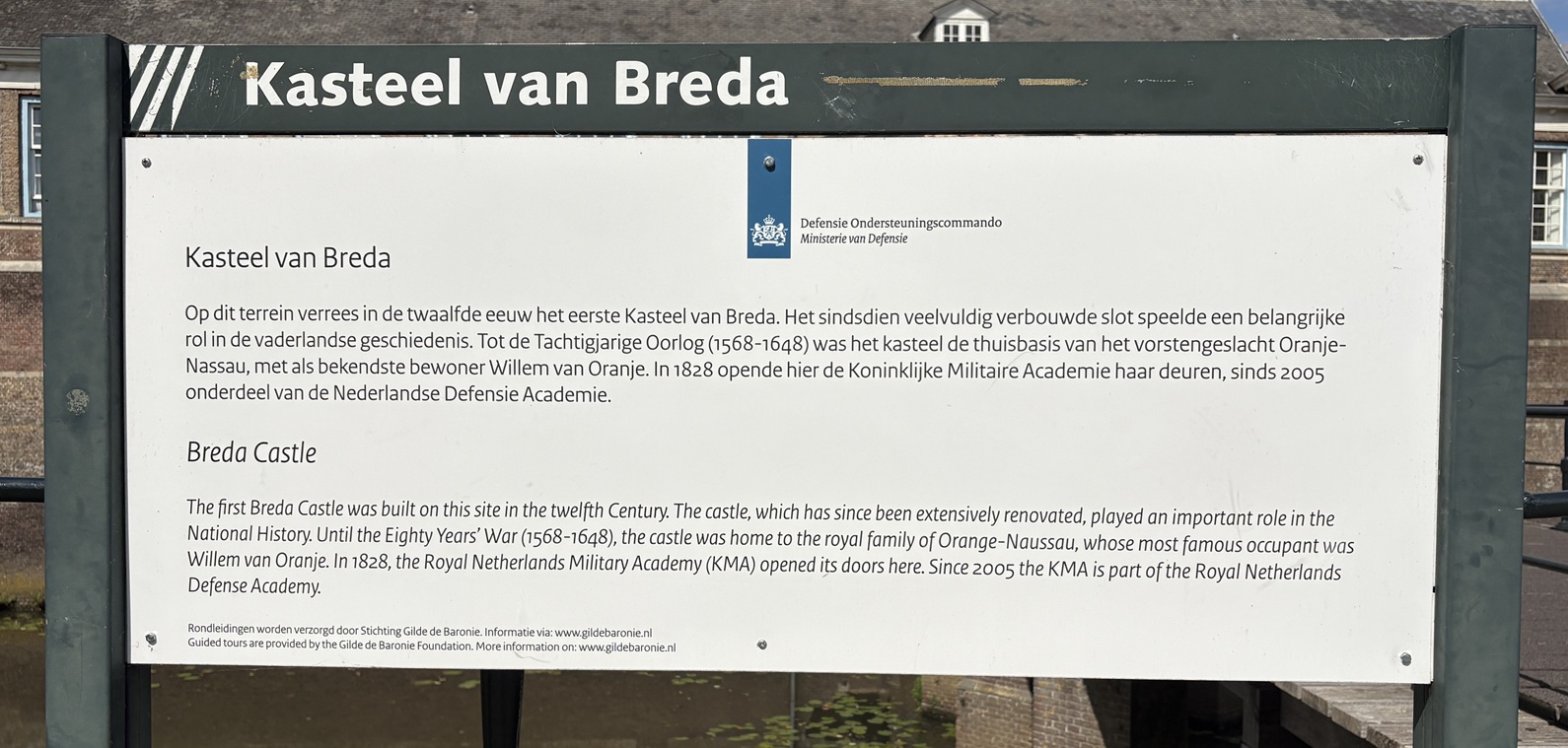 Een van de vele tegels die Breda rijk is. Deze betreft een herinnering aan 750 jaar Breda. Op 23 juni 1252 schonk de heer van Breda, Hendrik IV van Schoten, een aantal rechten aan de poorters van Breda op het gebied van belastingen, rechtspraak en de militaire verdediging van het land van Breda. Echte stadsrechten waren het niet, want de poorters hadden in 1252 al een eigen rechtspraak. Hieruit, en uit de terminologie van de akte, concluderen historici dat Breda op dat moment al een stad was met een eigen bestuur. De tekst van de oorkonde van 1252 is alleen in afschriften bewaard gebleven. Hij vormt het oudste bewijs van het bestaan van Breda als stad en wordt daarom al eeuwen (ten onrechte) aangehouden als beginjaar van het stedelijke bestaan van Breda.