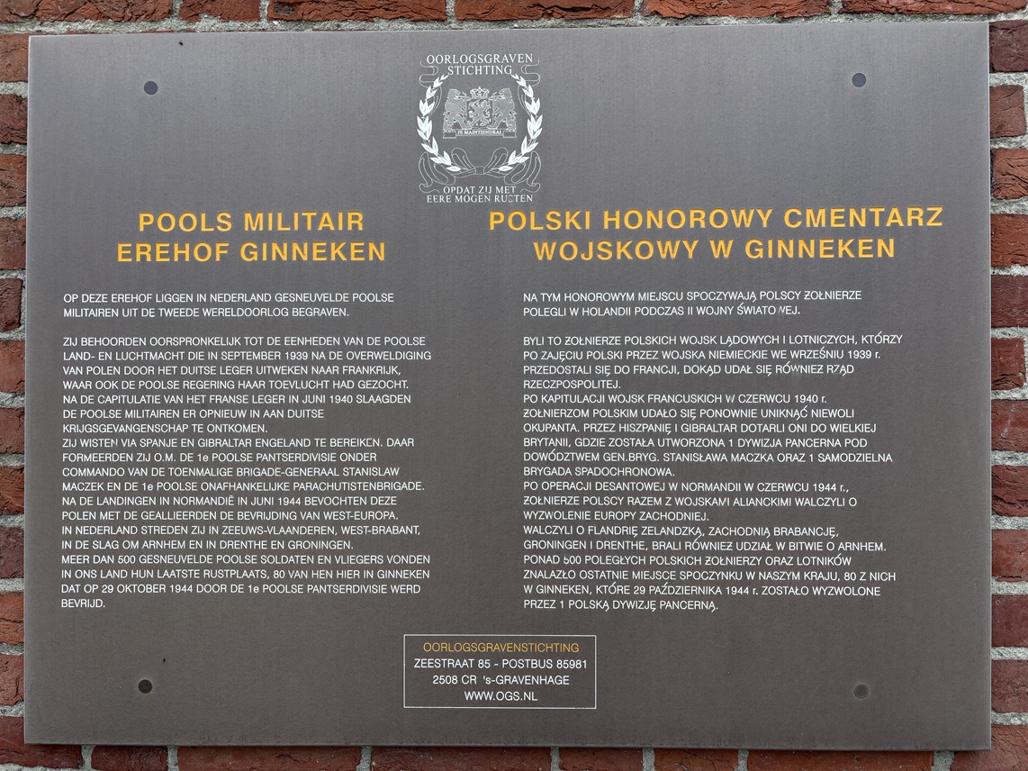 Meer dan 500 gesneuvelde Poolse soldaten en vliegers vonden in ons land hun laatste rustplaats, 80 van hen hier in Ginneken dat op 29 oktober 1944 door de 1e Poolse Pantserdivisie werd bevrijd.