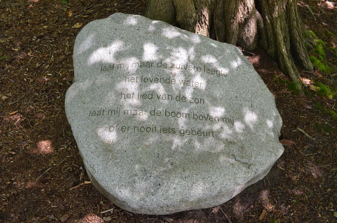Naast het fiets- en wandelpad op de rivierdijk tegenover Terheijden ligt een grote granieten steen met daarin poëzie gebeiteld, een strofe uit het gedicht ‘Het Lichaam van de Rivier’ van Maarten van den Elzen.