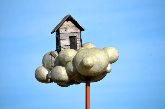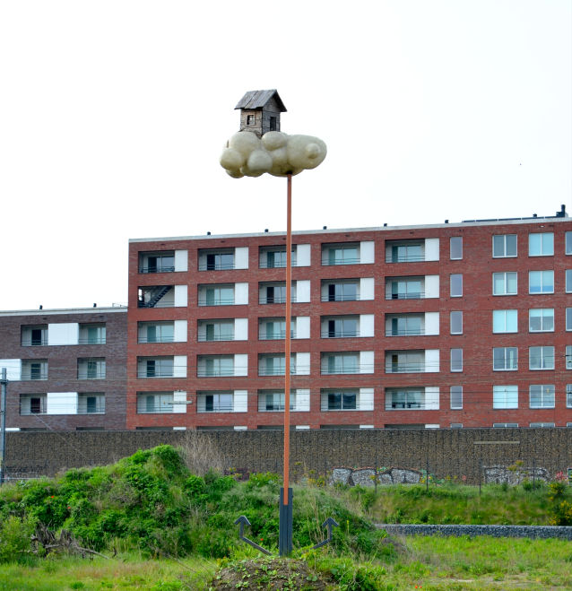 De Duitse kunstenaar onderzocht hoe groot de rode marker van Google Maps in de fysieke ruimte zou zijn. Het resultaat: een levensgrote rode marker die overeenkomt met de marker in de web-interface wanneer de kaart maximaal is ingezoomd.