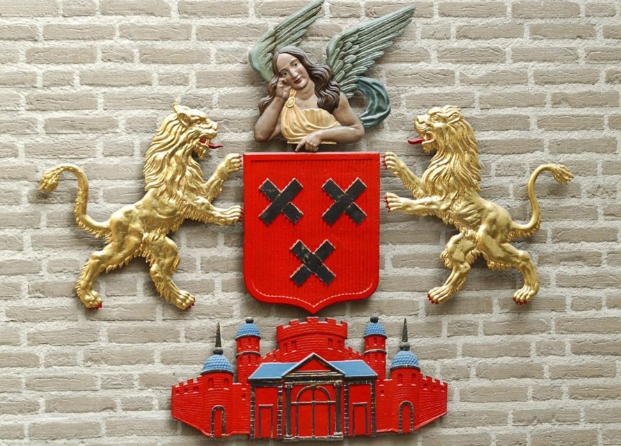 Het gemeentewapen en vlag van Amsterdam hebben sterke overeenkomsten met die van Breda; op het wapen van Amsterdam staan de drie kruizen onder elkaar en de kleuren zijn identiek. Op de Amsterdamse vlag staan de kruizen echter weer naast elkaar. Ook in Amsterdam is het een raadsel waar de drie Andreaskruizen in wapen voor staan. Een verklaring is dat ze terugwijzen naar de drie plagen die Amsterdam in de vroege eeuwen troffen: water, vuur en de pest.