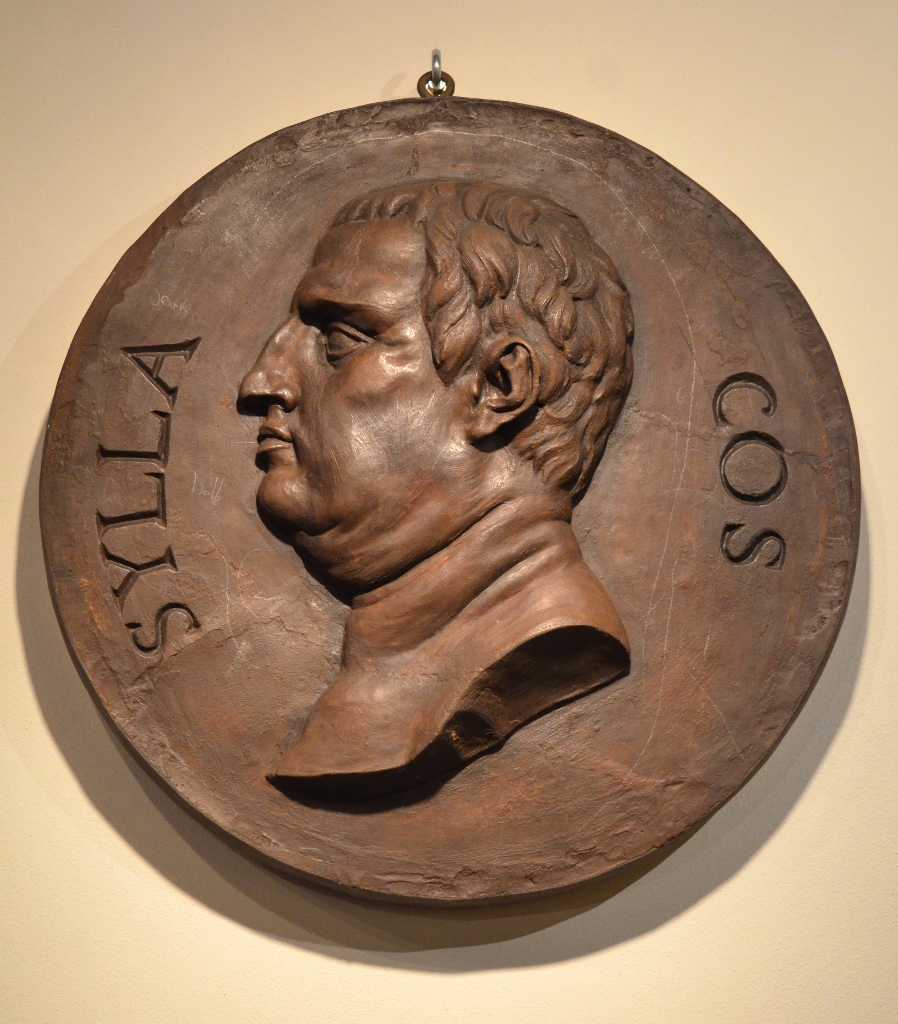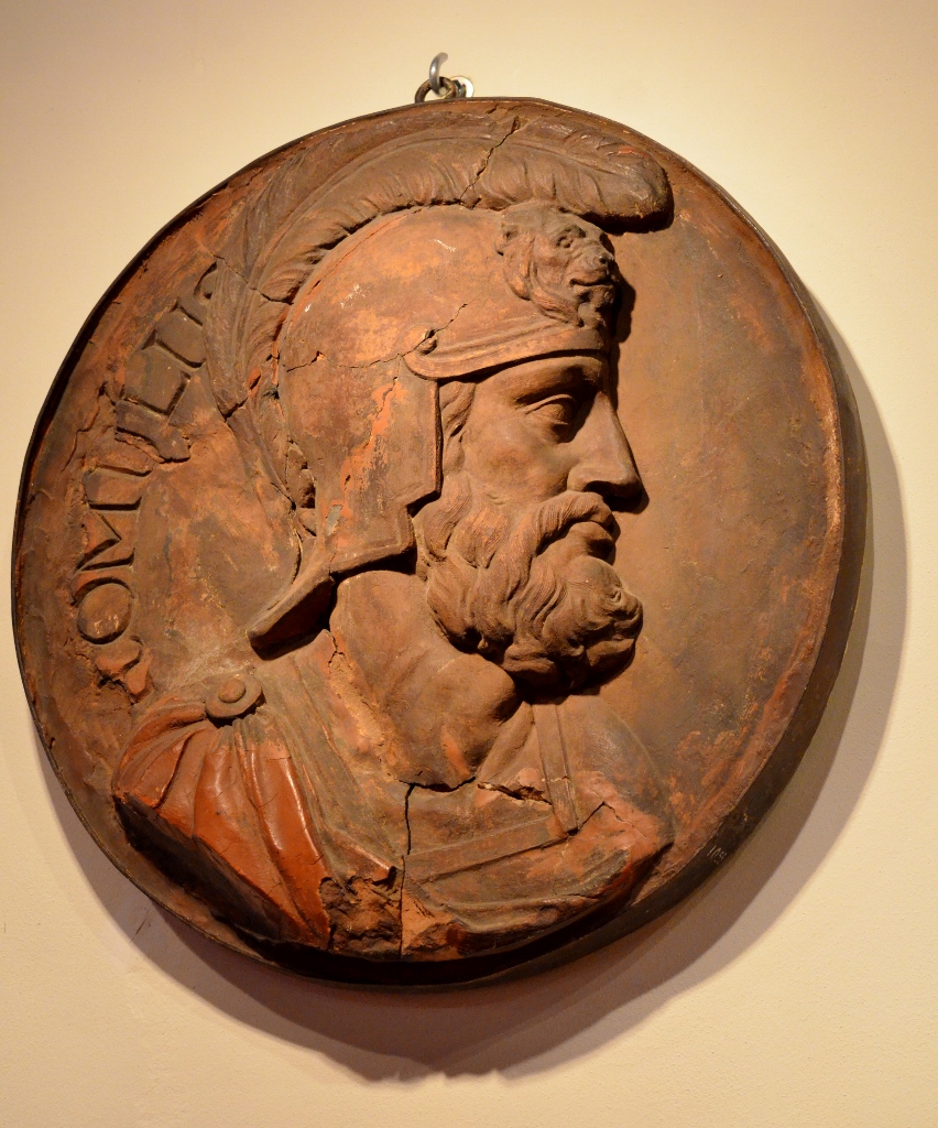 Dit zijn de enige 3 medaillons dit bewaard zijn gebleven uit het kasteel van de KMA. Van boven naar beneden zien we: Romulus, Aristides Athen en Sylla Cos. Deze medaillons zijn in 1929 gerestaureerd met gips door Lukas van der Meer. Het totaal aantal medaillons betrof 36 stuks. Van de 36 medaillons zijn replica’s gemaakt die vervolgens weer geplaatst zijn op de binnenplaats van het kasteel. De medaillons waren eerder uit het kasteel gesloopt toen het werd verbouwd.