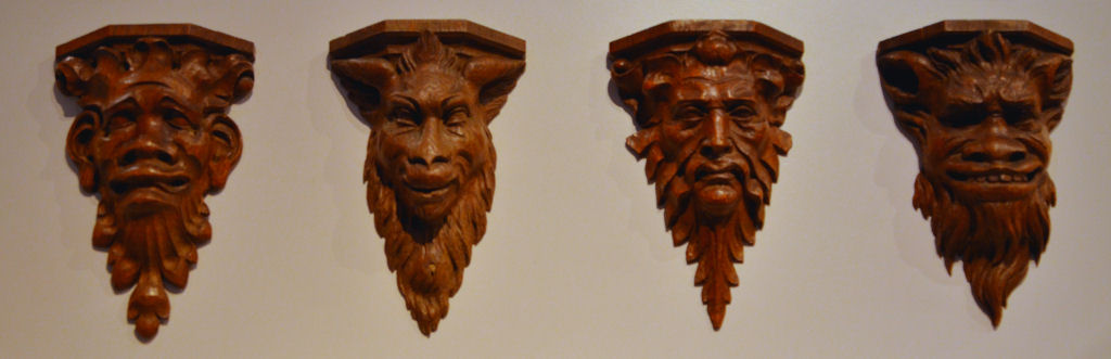 Aan de bovenkant van de zuil (onder Judith) staan de volgende vier dierkoppen afgebeeld: