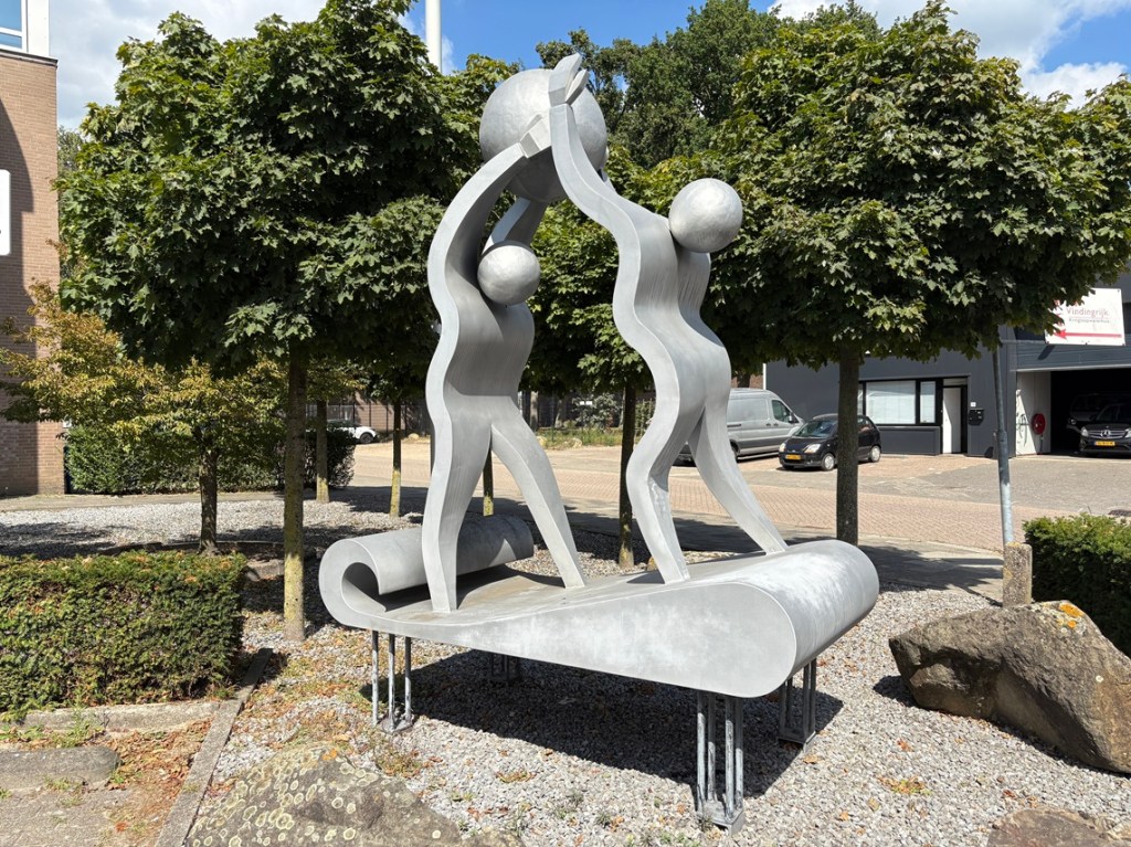 Dit beeld staat voor het kantoor van de gemeente op de hoek van Riethil en Oude Baan. Het beeld toont hoe twee mensen samenwerken of twee kinderen die samen spelen.