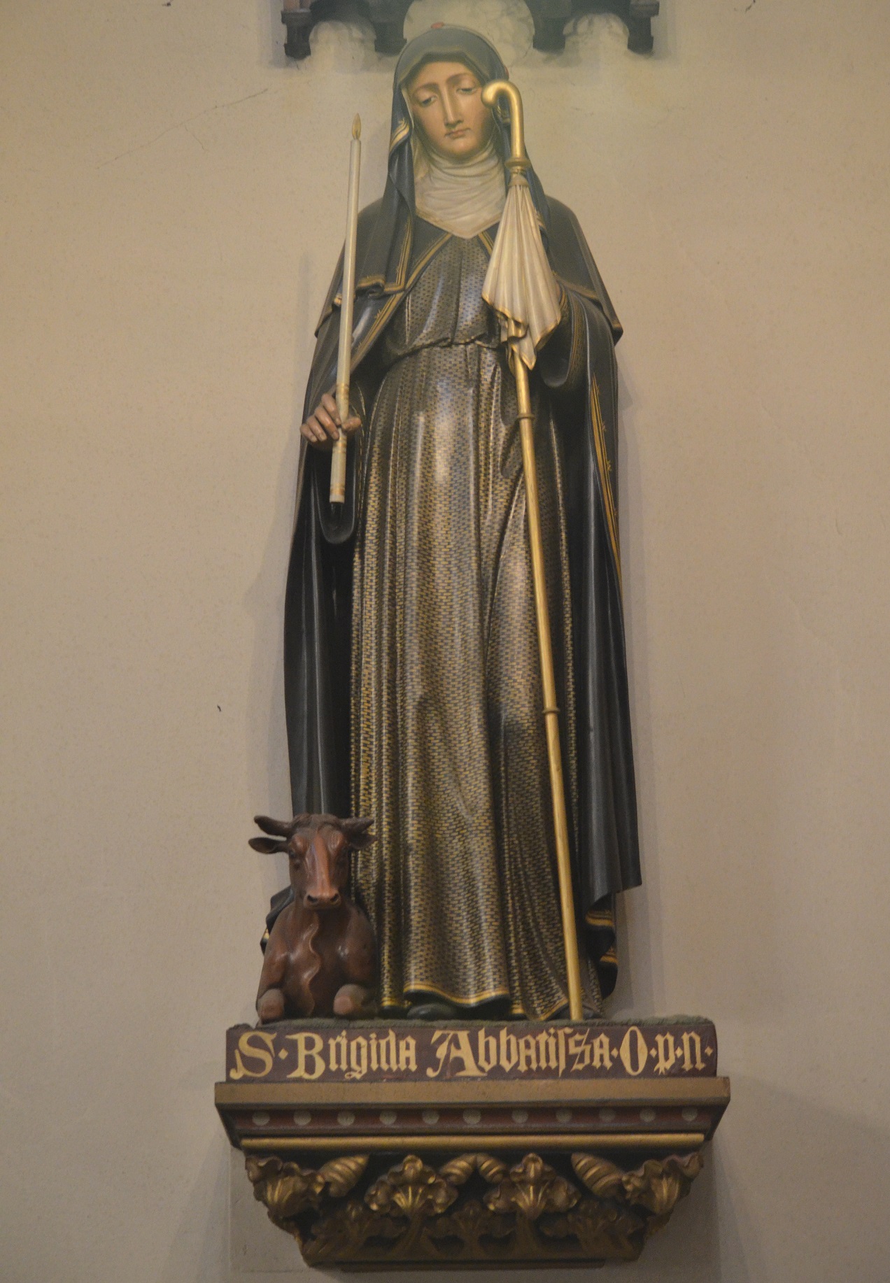 Het beeld is destijds geschonken door een begijn. Op de sokkel is weergegeven: S. Brigida Abbalitsa O.P.N.