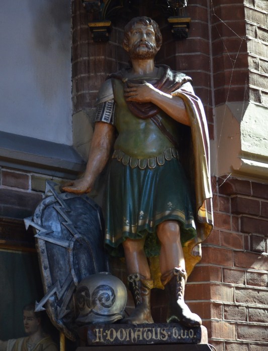 Donatus behoort tot de zogenaamde catacombenheiligen, van wie in historisch opzicht niets bekend is maar over wie diverse legenden bestaan. Volgens een legende behoorde hij tot het Legio fulminatrix (Bliksemlegioen). Vandaar dat Donatus afgebeeld wordt met een pijlenbundel, bestaande uit bliksemschichten. Hij wordt vereerd in het Rijnland en de Lage Landen (bijvoorbeeld in Altforst), als beschermer tegen onweer en blikseminslag.