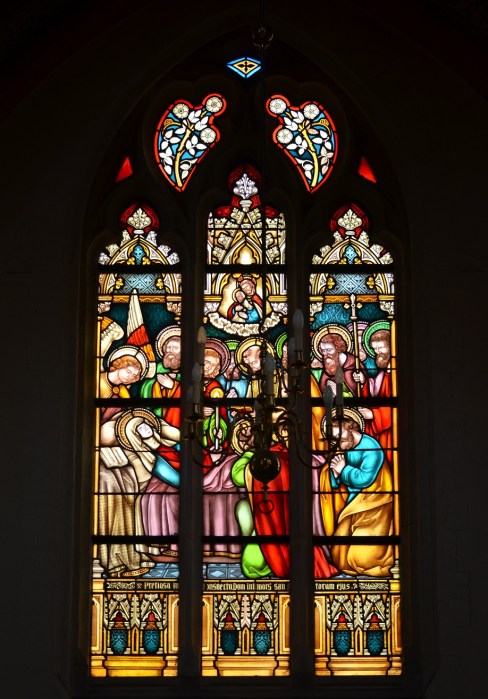 De neogotische kerk heeft 13 mooie en grote glas-in-lood ramen. Ze zijn een bezienswaardigheid. De glas-in lood venster ter plaatse van het schip hebben eenvoudig wit glas. De hieronder beschreven vensters hebben gebrandschilderd glas.
