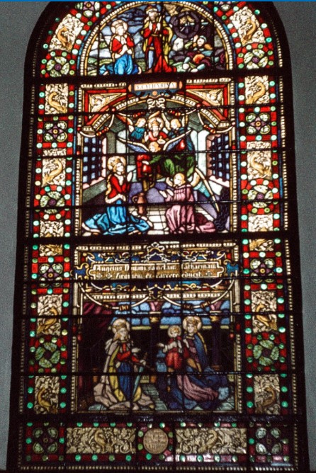 Materiaal/techniek: glas-in-lood met gebrandschilderd glas