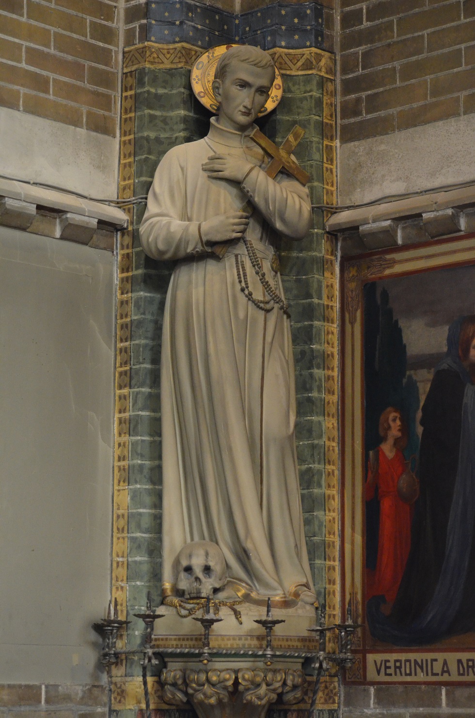 Middelste rij: H. Rosa van Lima, H. Thomas van Aquino, 2 engelen, H. Franciscus van Assisi en H. Theresia van Avila