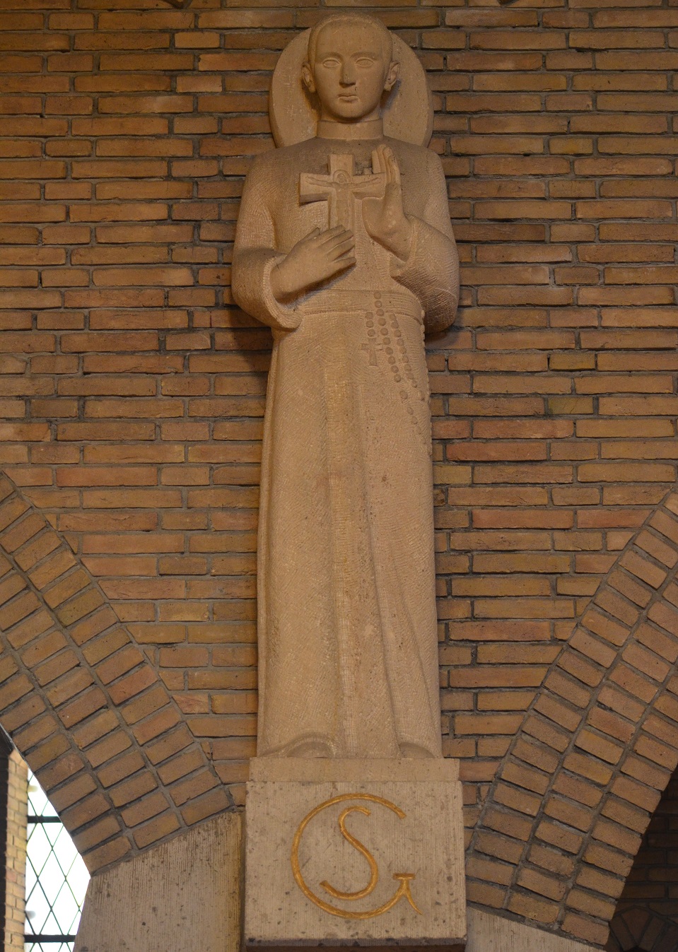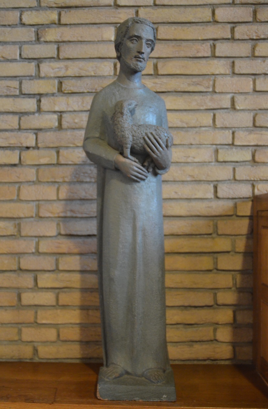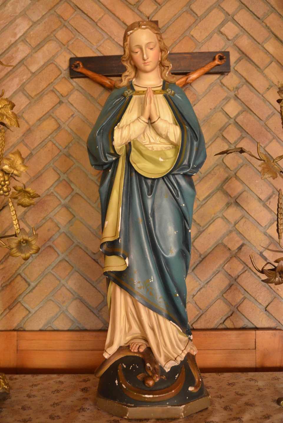 Het beeld aan de voorgevel is geschonken door de parochianen bij de kerkwijding in 1939.