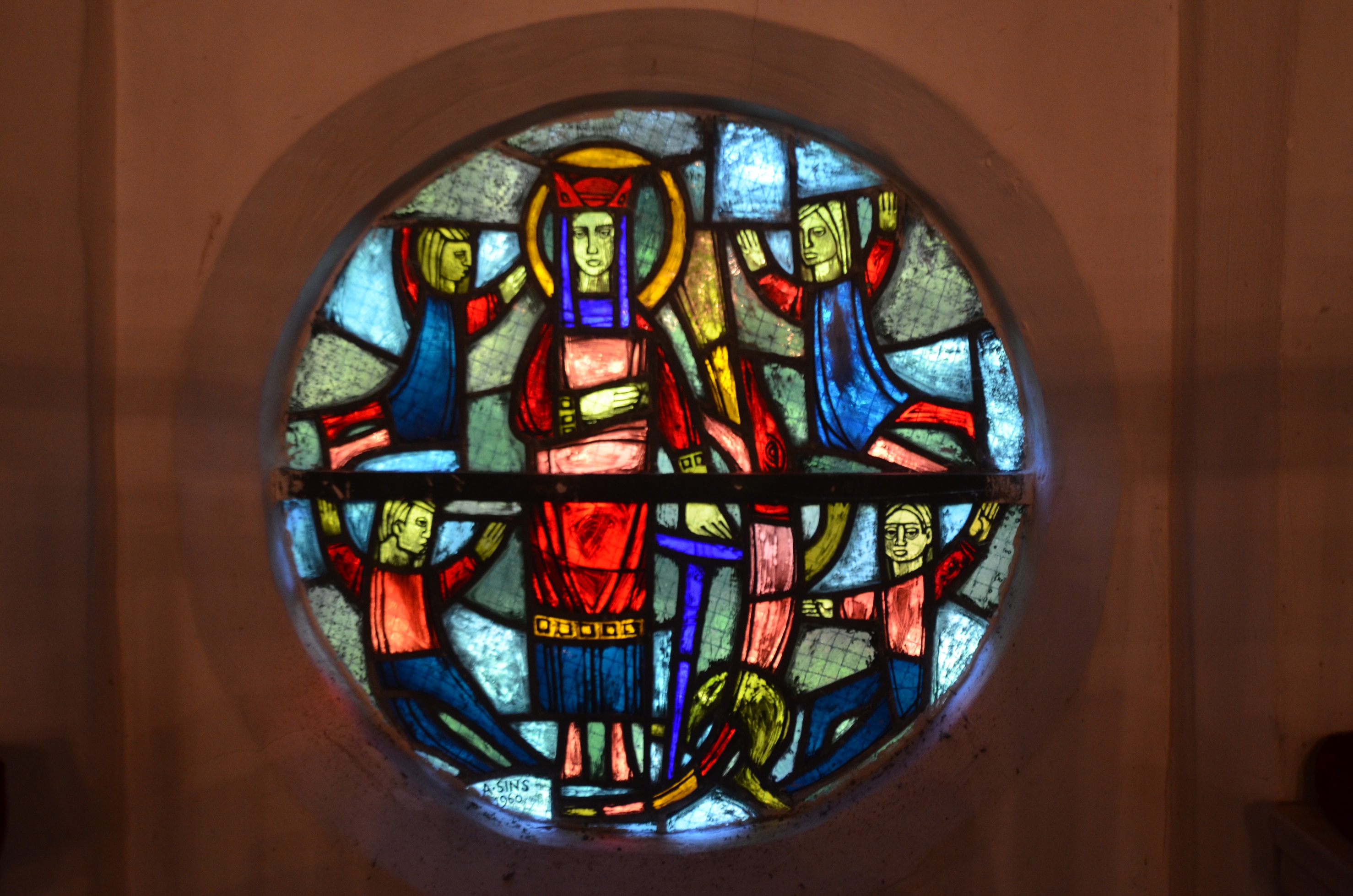 Materiaal: glas-in-lood met gebrandschilderd glas