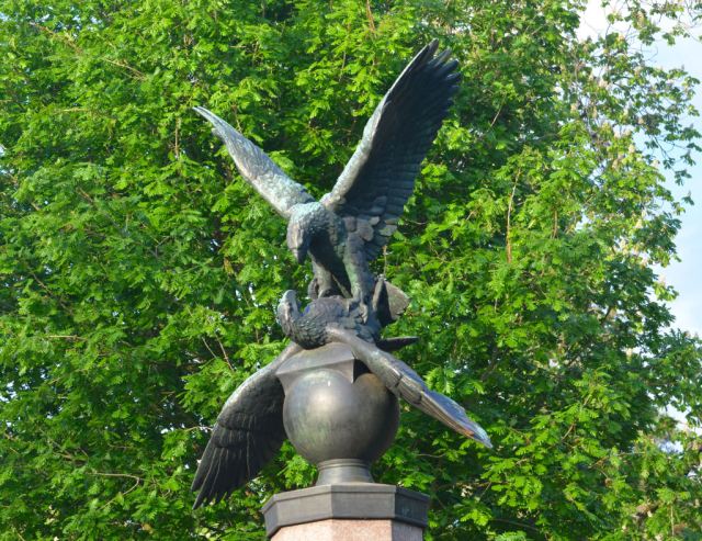 De twee adelaars op het monument staan voor Polen en Duitsland. Beide landen hebben een gestileerde adelaar in hun wapenschild. De bovenste adelaar (Polen) onderwerpt de onderste adelaar (Duitsland). Dit verwijst naar de grote rol die de Poolse militairen speelden bij de bevrijding van Breda. Het gevecht vindt plaats op een wereldbol, die verwijst naar de schaal van de Tweede Wereldoorlog.